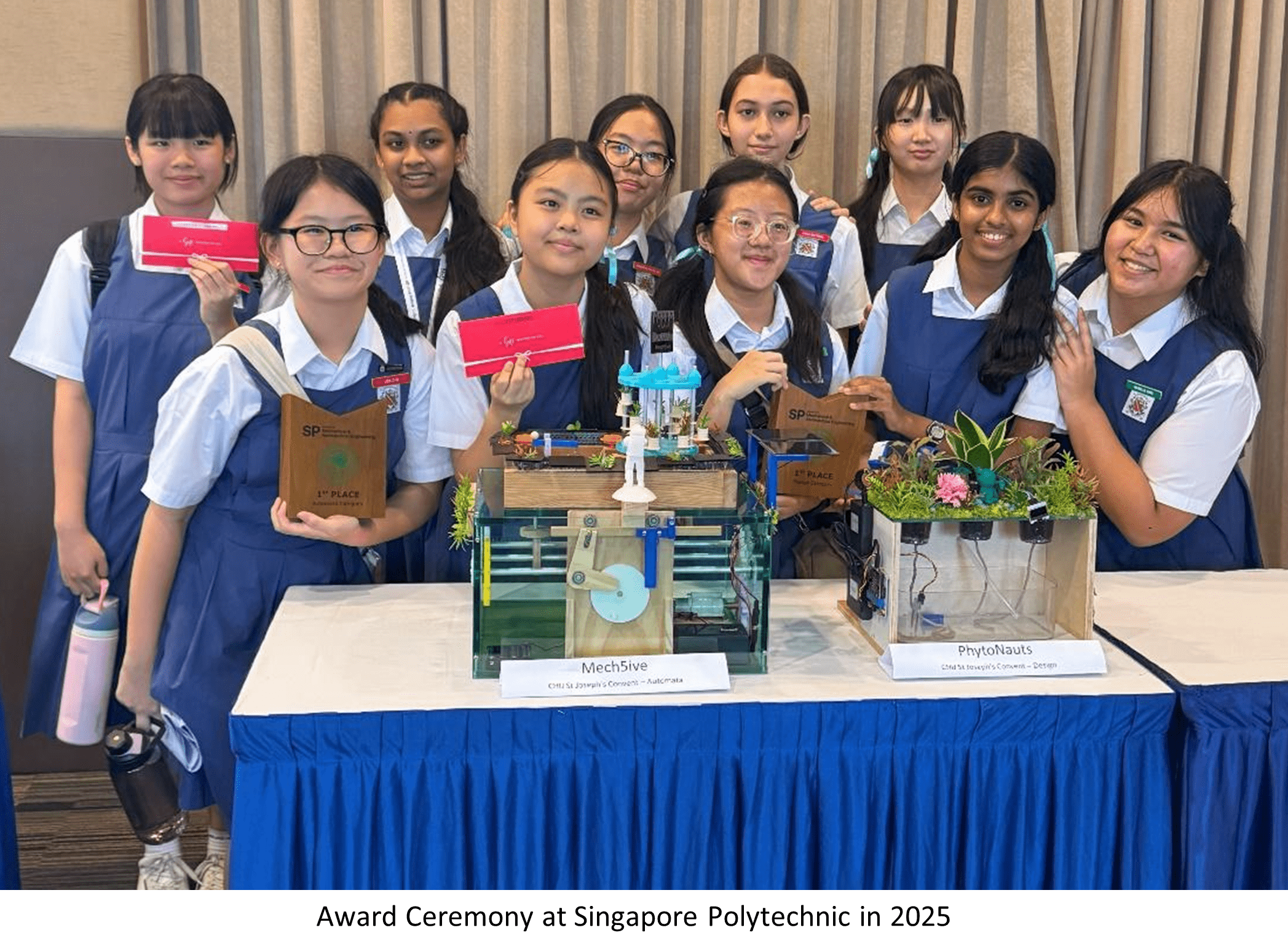Our Secondary 2 team continued to win the 1st Prize in the Automata Category at Singapore Polytechnic in 2025, turning learning into practical innovation through creativity and teamwork.