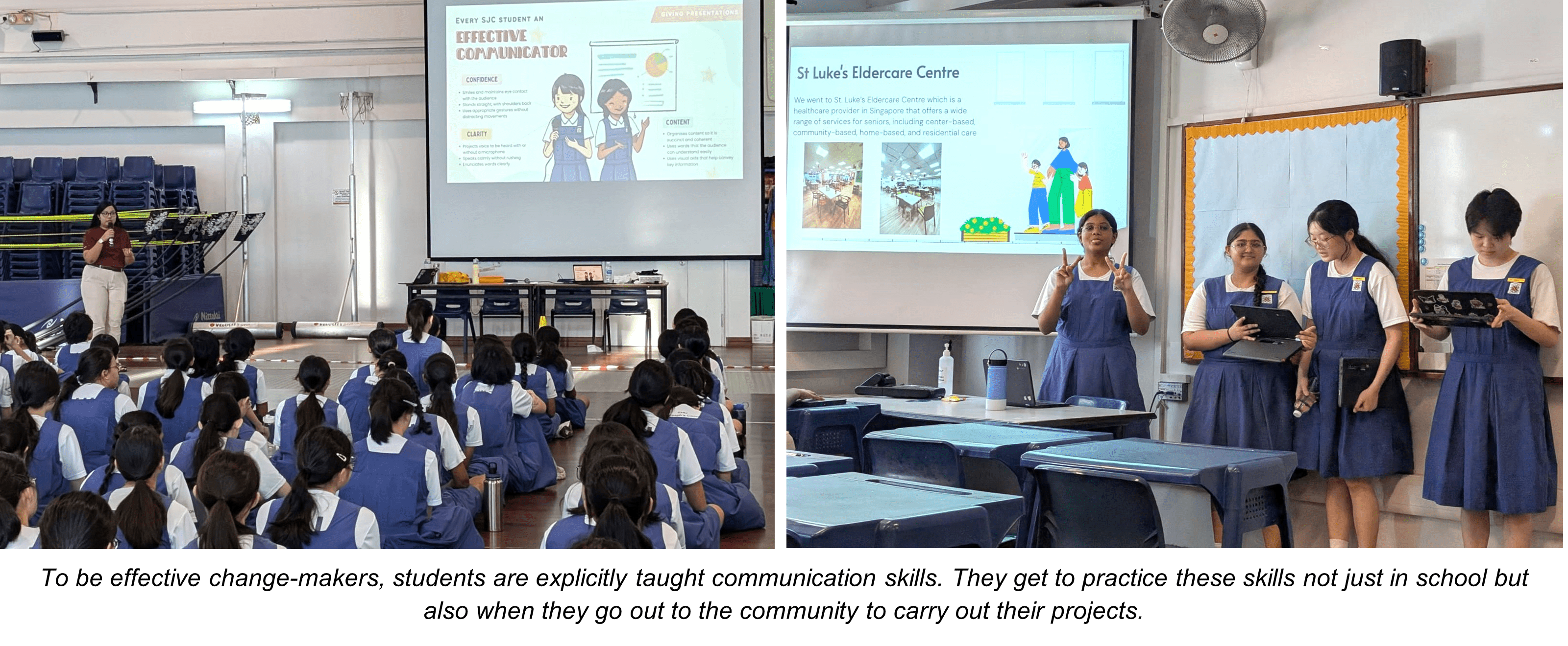 The 4-year programme includes broad themes for students to explore and work on projects ranging from Sustainability (Sec 1), School (Sec 2), and the Elderly (Upper Secondary). Our close partnership with external organisations, including social enterprises and Senior Activity Centres in the Sengkang and Punggol area allow students authentic and meaningful opportunities to make a difference. To extend their influence, selected groups present their projects and learning in the annual Passion Ignite and VIA showcase to their peers during Learning Week.