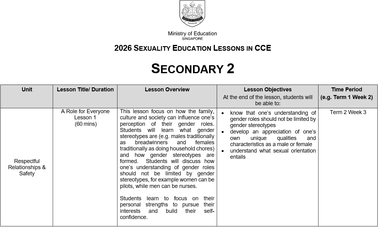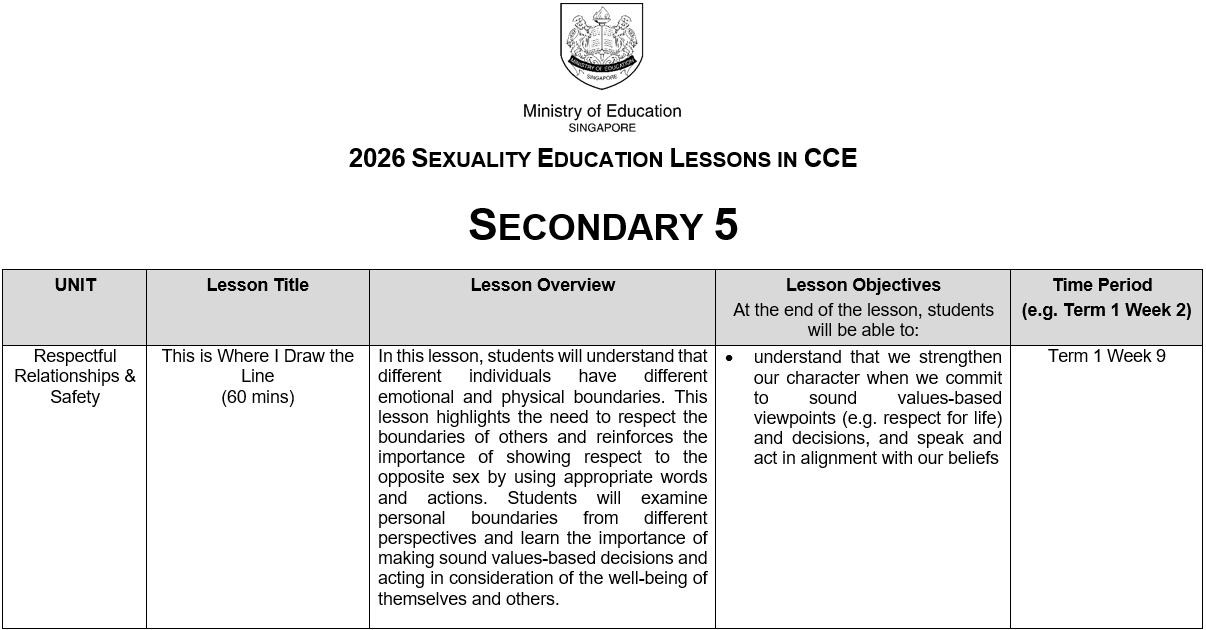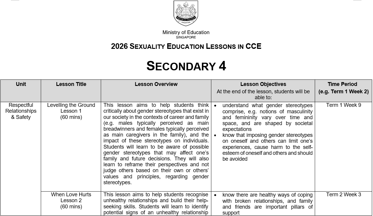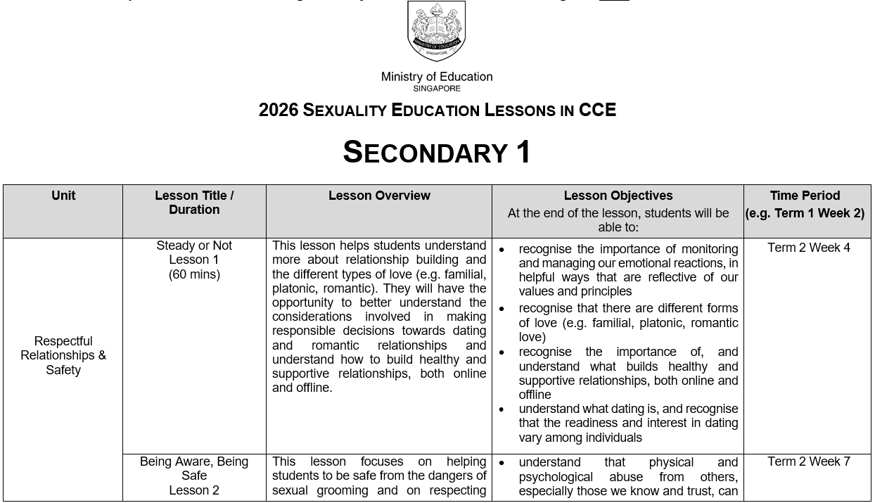 You may click here for more information on MOE Sexuality Education.