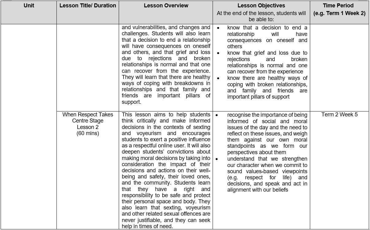 At CHIJ St. Joseph's Convent, the following Sexuality Education lessons will be taught in 2026: