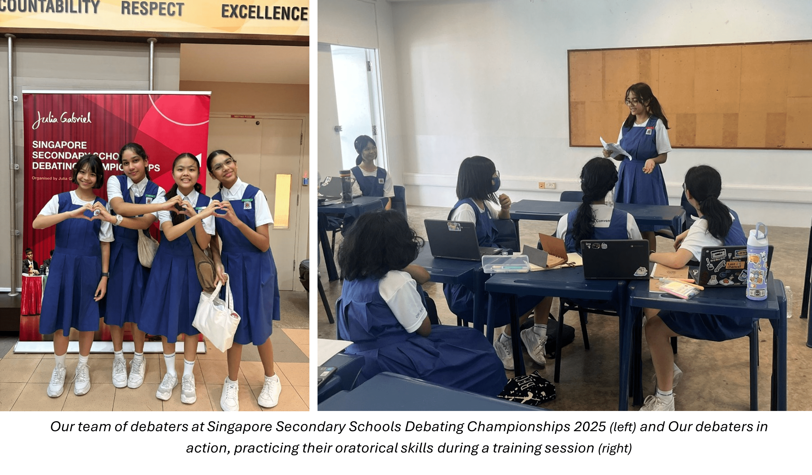 The Vox Collective presents a unique opportunity for students to develop their oratorical skills through CCA. As a CCA, we provide a vital platform for students to practice expressing their thoughts clearly, articulately, and persuasively. During weekly sessions, participants are introduced to fundamental debate and speechcraft techniques, with training exercises designed to cultivate adaptive thinking and improve quick-witted improvisation. The sessions naturally challenge students to step beyond their comfort zones and practice crafting logical arguments, often involving in-depth discussions about current affairs and relevant social issues to foster a broader understanding of the world. Beyond formal speaking, students acquire valuable soft skills, including improved time-management and communication abilities, which contribute to the development of self-confidence. Ultimately, The Vox Collective aims to be a supportive community where students learn the value of open-mindedness and mutual respect while having opportunities to bond and practice essential life skills.